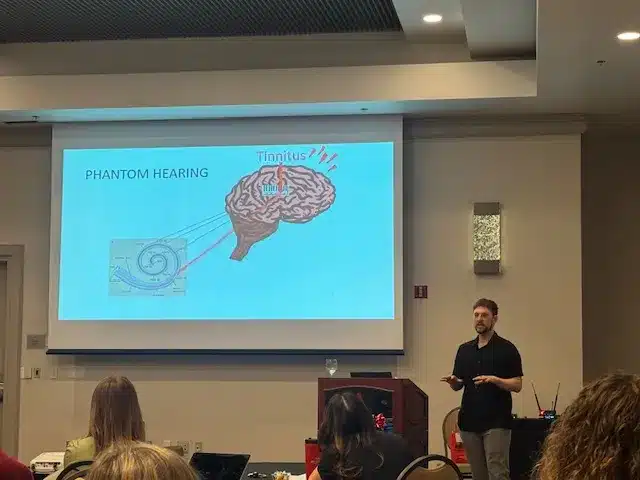 Evan Davies, Au.D., AAA, CH-TM, was a featured presenter on patient-centered approaches to tinnitus management at the University of Arizona Speech, Language, and Hearing Sciences department’s Grunewald-Blitz Interprofessional Workshop on Friday, September 19. This workshop provided a valuable learning opportunity for both community professionals and faculty/students from the University of Arizona.
